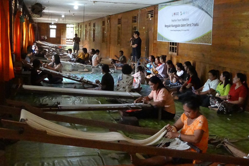 Pelatihan yang berlangsung pada 16-19 Januari 2024 ini ditujukan bagi para perempuan Dayak Iban di Kabupaten Kapuas Hulu, Kalimantan Barat, yang telah turut menjaga kelestarian ekosistem hutan dengan norma tradisional dan aturan adat. Tujuan pelatihan ini untuk memperkuat tradisi tenun ikat Dayak Iban agar mampu meningkatkan penghidupan mereka yang berakar pada warisan budaya dan sumber daya lokal.