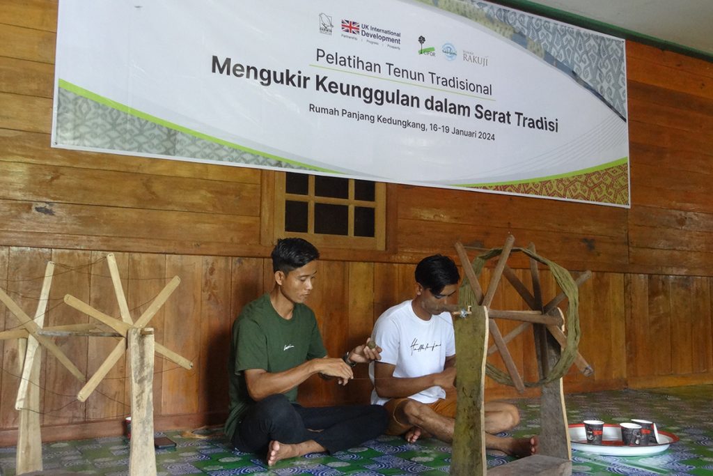 Pagi itu, suasana di rumah panjang khas Suku Dayak Iban di Kampung Kedungkang tampak semarak. Sebanyak 29 perempuan sibuk memasang alat tenun mereka, diselingi canda dan tawa riang. Mereka sedang bersiap mengikuti pelatihan menenun tradisional bertajuk “Mengukir Keunggulan dalam Serat Tradisi” yang diselenggarakan oleh Yayasan Riak Bumi (YRB) dan Center for International Forestry Research (CIFOR)—dengan dukungan utama dari Darwin Initiative (Pemerintah Inggris) dan kontribusi dari The International Climate Initiative/IKI (Pemerintah Jerman).