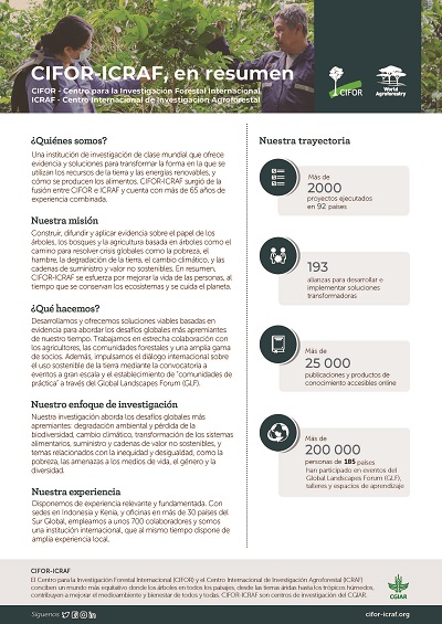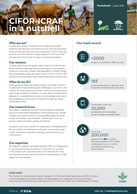 Looking for organizational information on CIFOR–ICRAF? Find the latest annual reports, financial reports and strategies here.