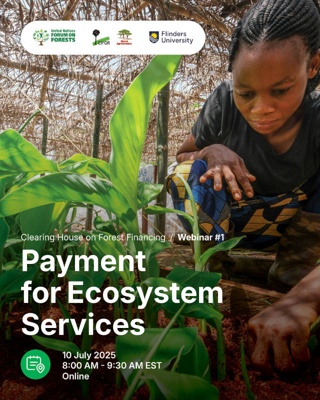 This webinar will present a global synthesis on Payment for Ecosystem Services (PES) for forests, highlighting country experiences, good practices, and implementation challenges. It will provide insights into the conditions and modalities necessary for effective PES implementation, with a focus on how the approach can be replicated in other contexts and how site-level projects can be scaled up to national-level schemes.